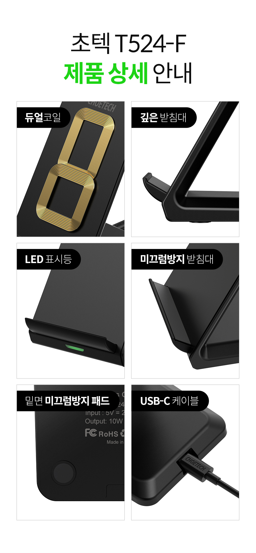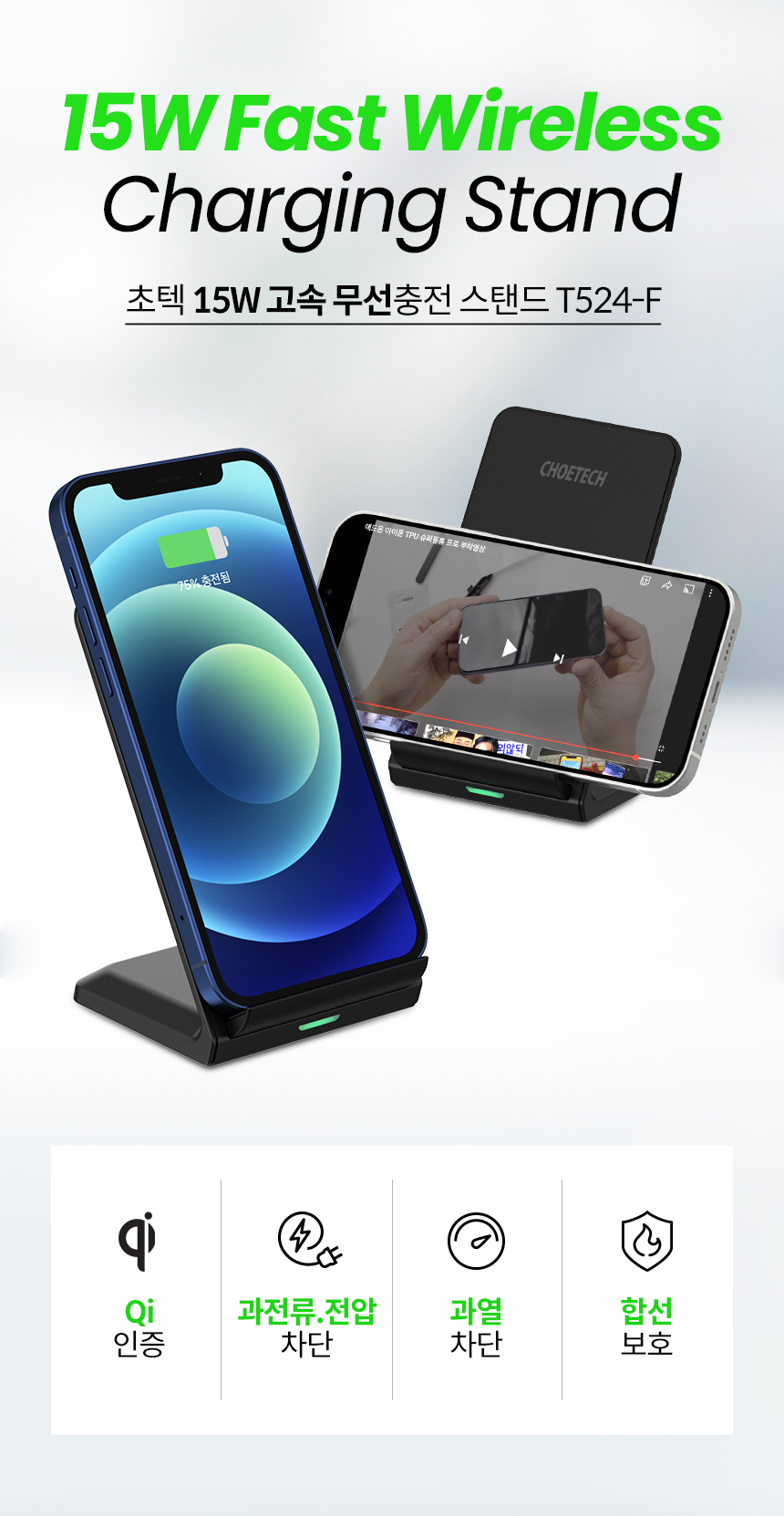 [CHOETECH] 초텍 15W 고속 무선 충전 스탠드 T524-F