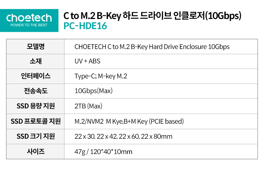 초텍 C타입 to M.2 B-Key 하드 드라이브 인클로저(10Gbps) PC-HDE16