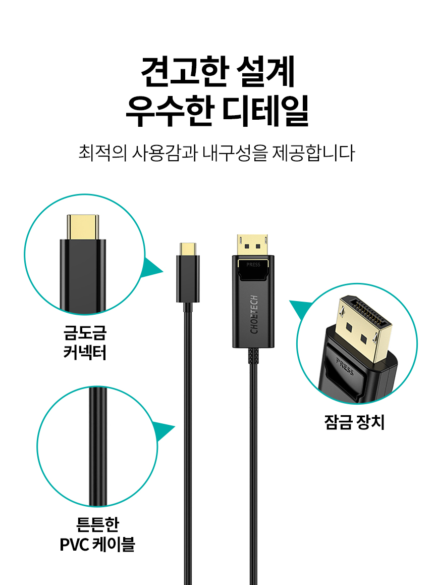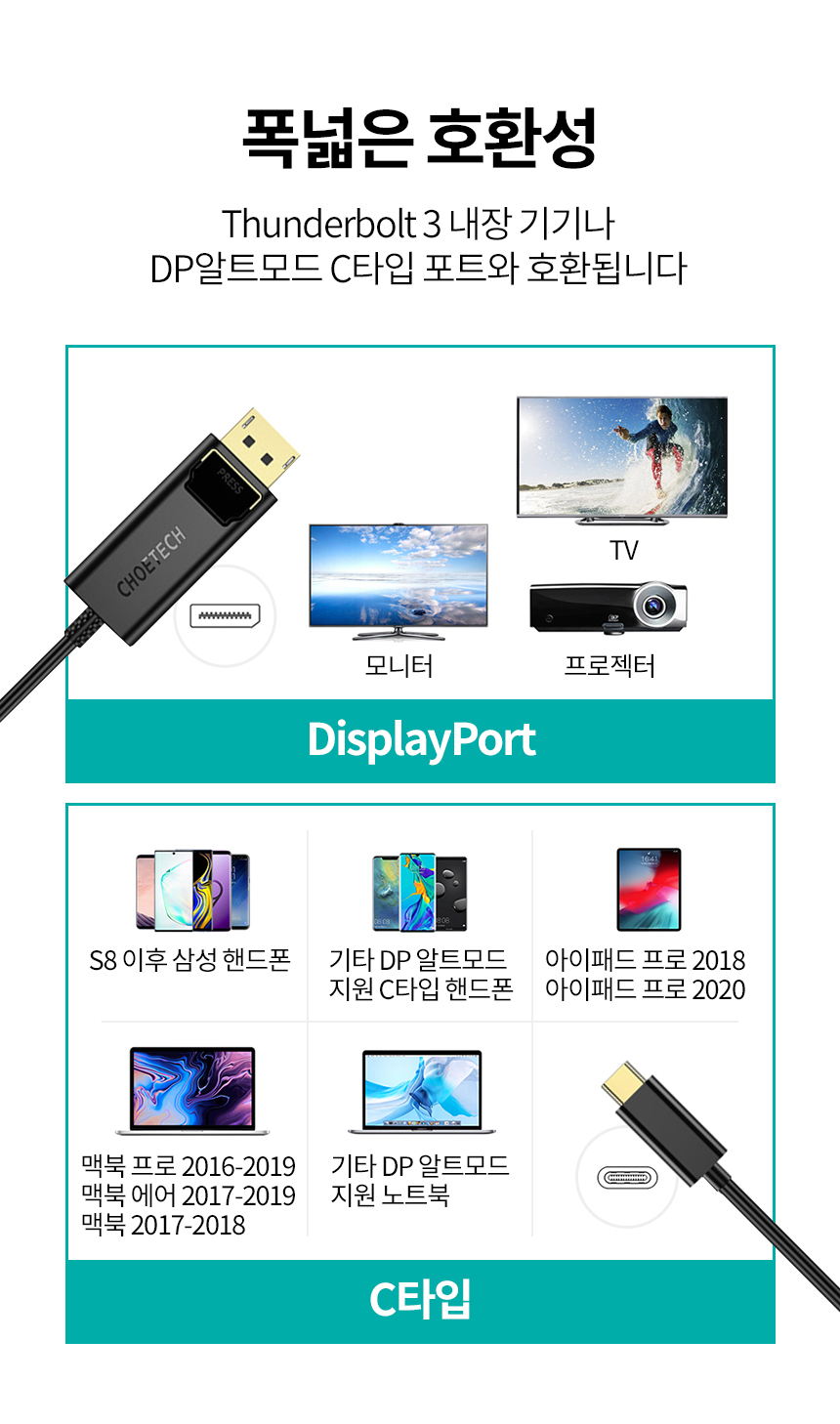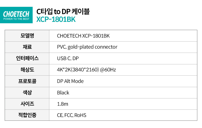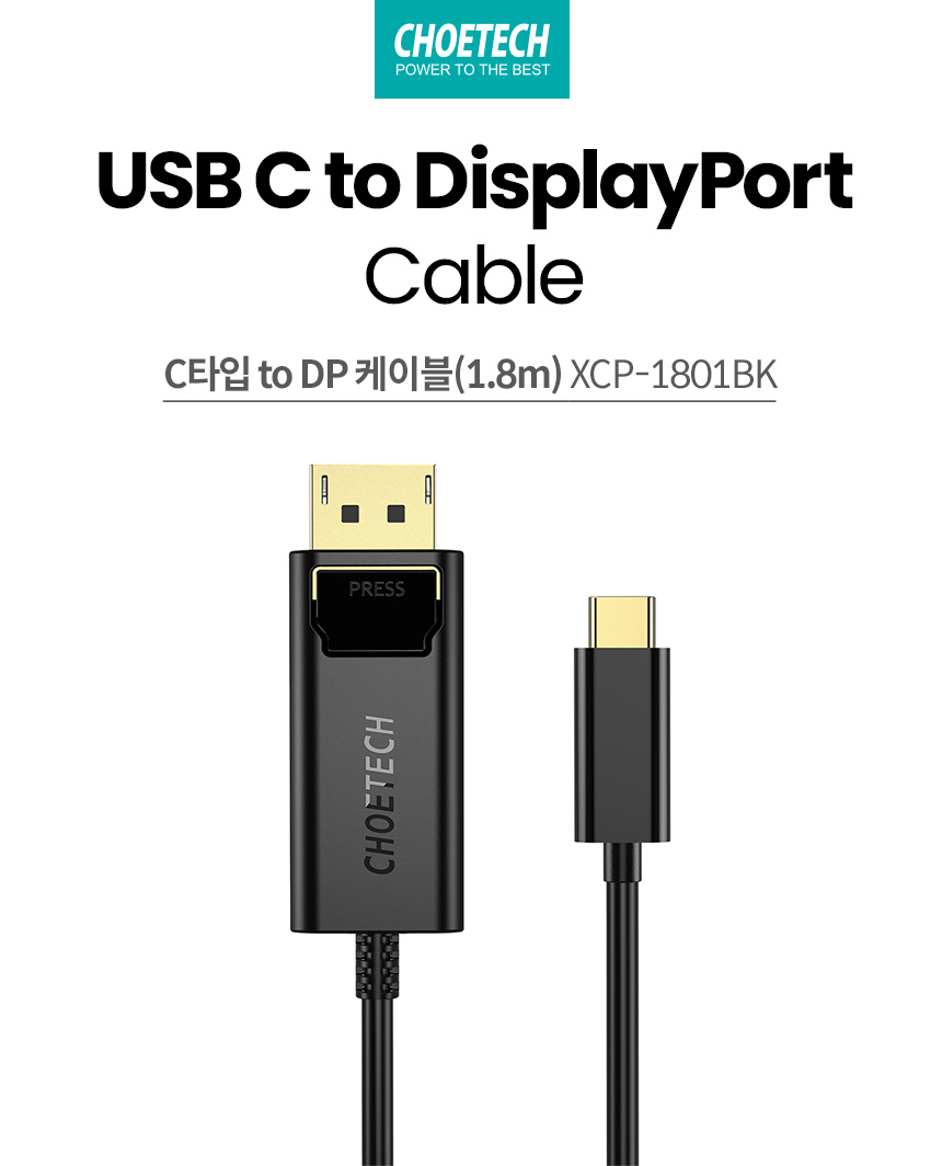 [CHOETECH] 초텍 C타입 to DP 케이블 (1.8m) XCP-1801BK-V1